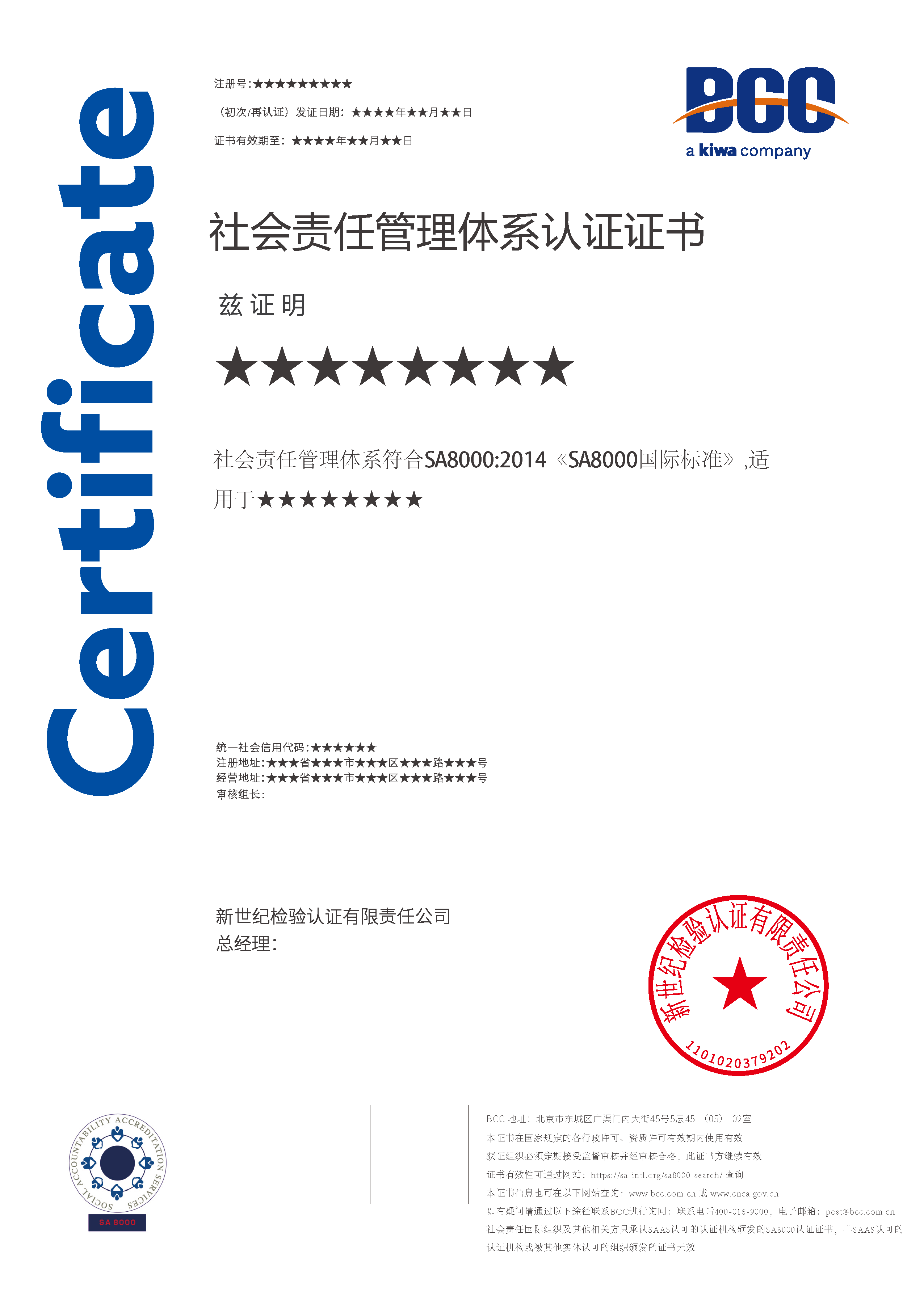 社會責(zé)任管理體系證書 SA8000證書  SA8000證書-新版