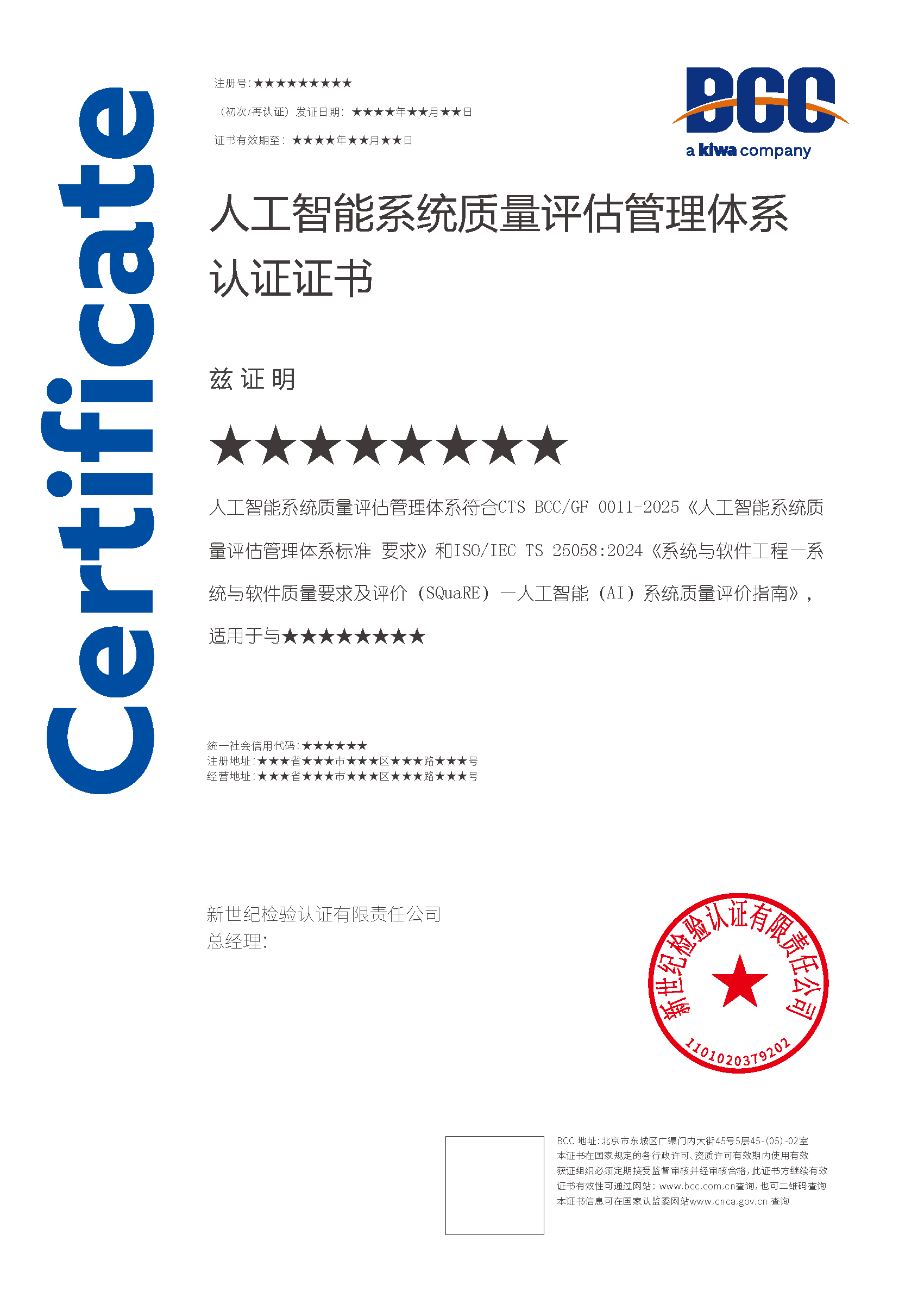 本頁(yè)涉及的認(rèn)證服務(wù)中均有對(duì)應(yīng)的《認(rèn)證實(shí)施規(guī)則》,BCC擁有其最終解釋權(quán)。任何組織及個(gè)人未經(jīng)BCC許可,不得以任何形式全部或部分使用(法律要求除外)認(rèn)證相關(guān)信息。如需獲取相關(guān)實(shí)施規(guī)則請(qǐng)用以下方式聯(lián)系獲取:電話(huà):010-58579316 郵箱:fwjs@kiwa.cn
