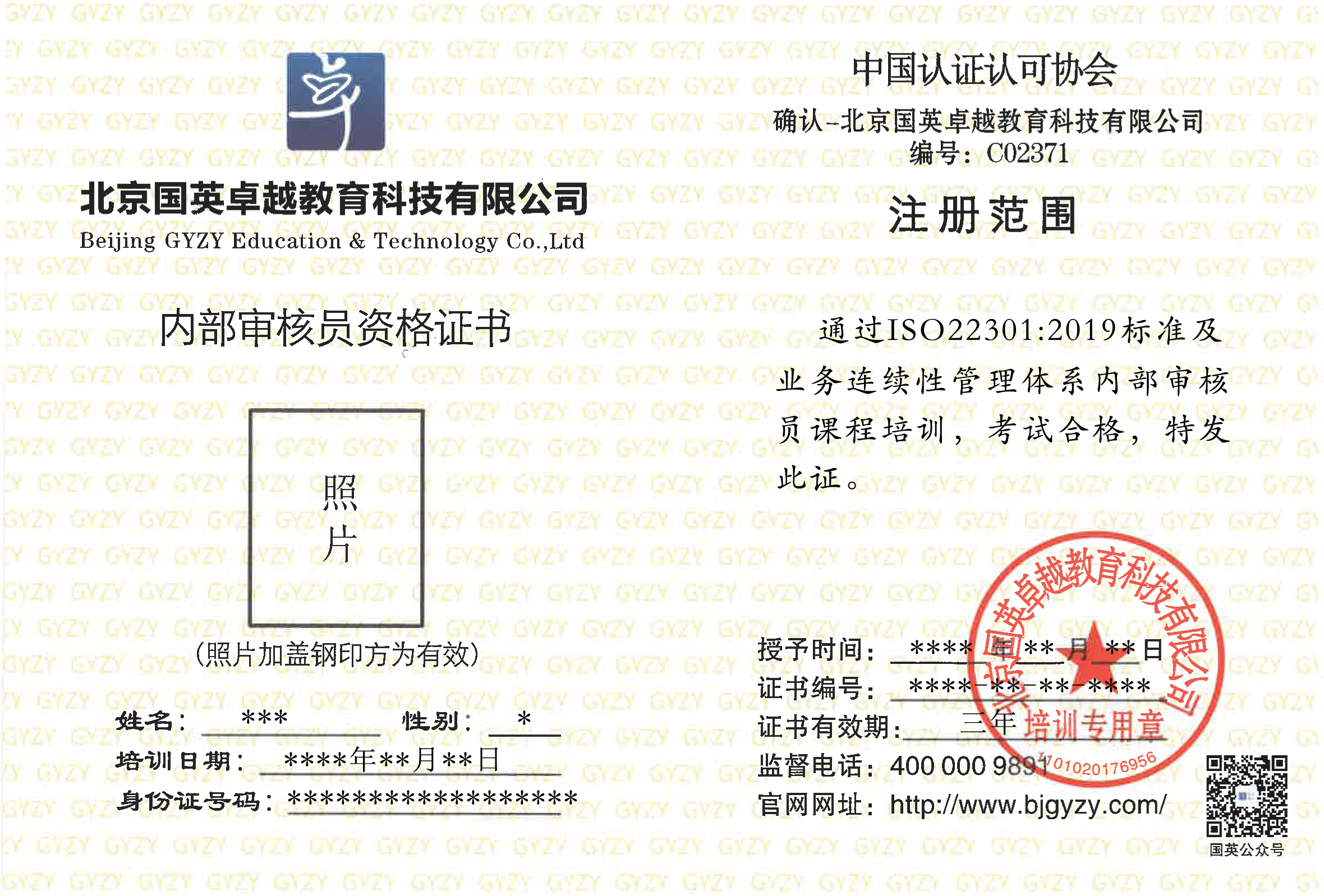 內(nèi)審員證書 外審員證書
