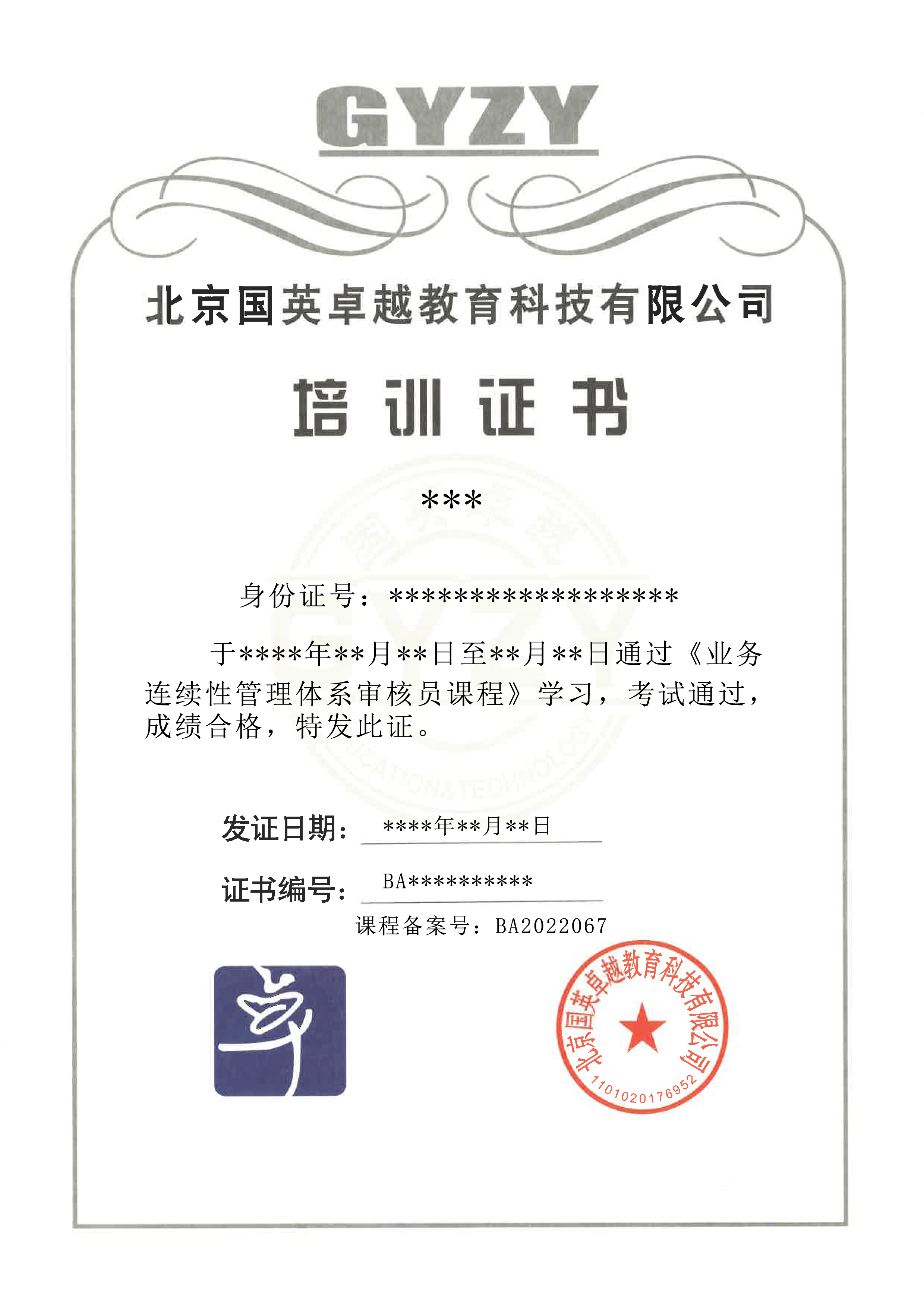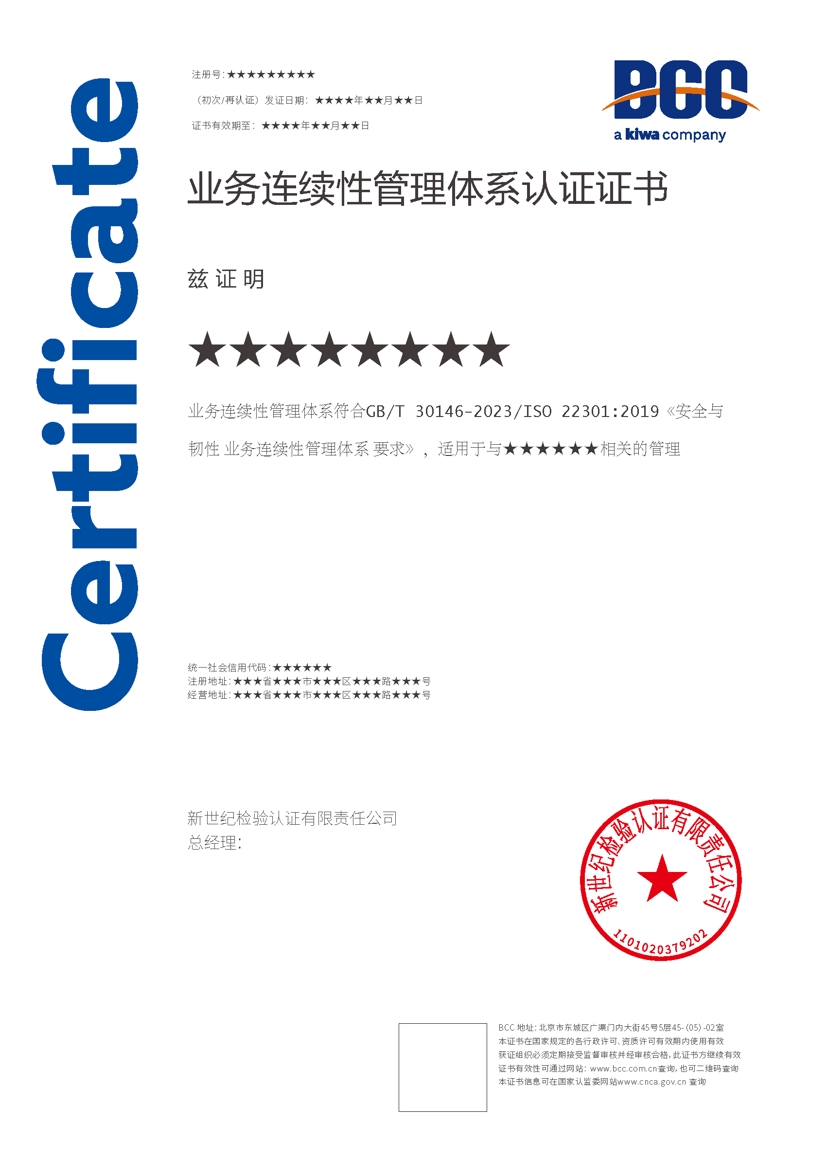 業(yè)務(wù)連續(xù)性認(rèn)證證書(帶標(biāo))
