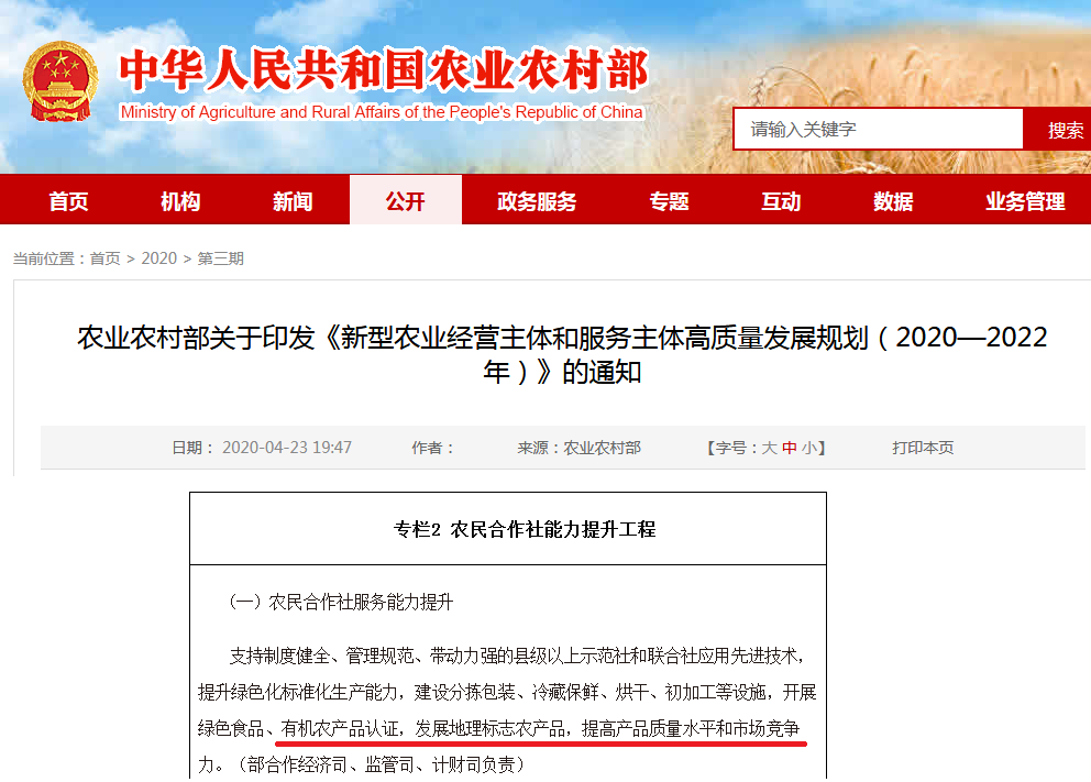 意見指出,“引導(dǎo)企業(yè)爭取國際有機(jī)農(nóng)產(chǎn)品認(rèn)證,加快提升國內(nèi)綠色、有機(jī)農(nóng)產(chǎn)品認(rèn)證的權(quán)威性和影響力。”