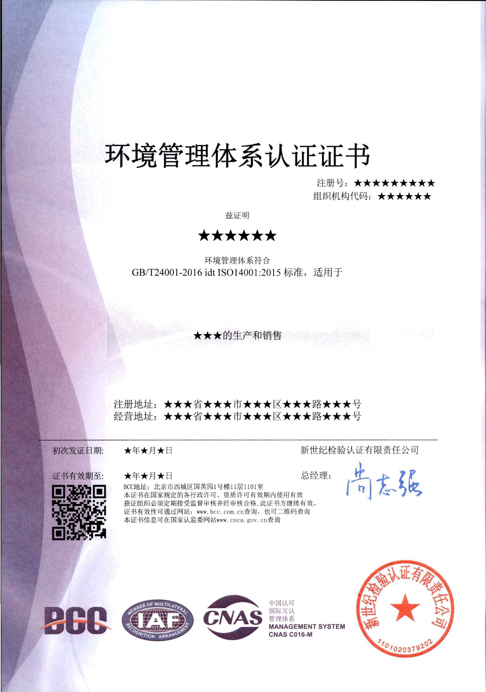 你好,環(huán)境管理體系認(rèn)證書樣本每個(gè)認(rèn)證機(jī)構(gòu)都是不一樣的。但是證書上一定有認(rèn)證的標(biāo)準(zhǔn)、標(biāo)志、產(chǎn)品范圍等信息。