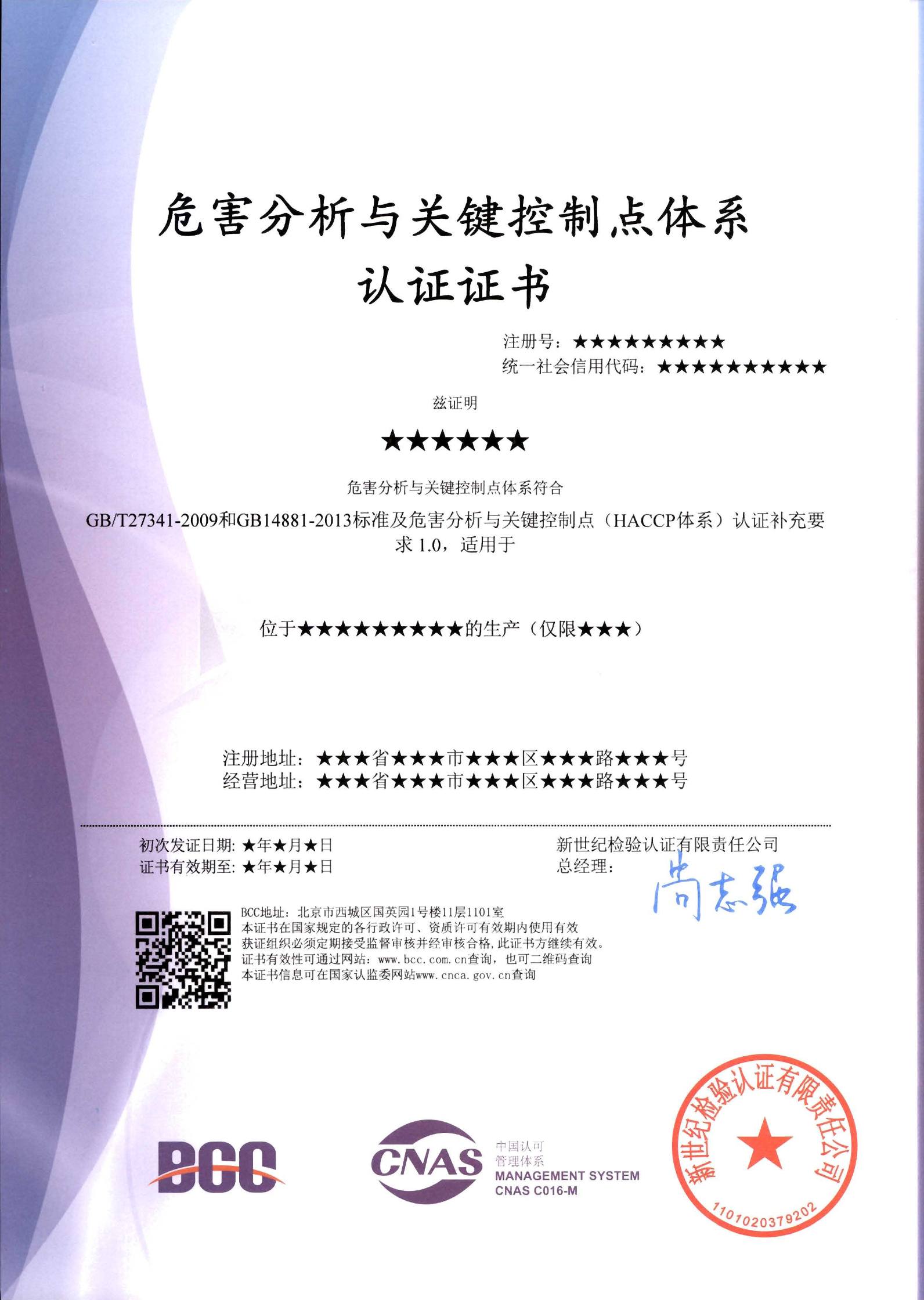 廣州專業(yè)haccp認證證書